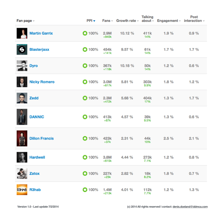 […] fanbase met 718% hebben laten groeien. Martin Garrix is in dit rapport nog niet meegenomen, maar de groei in Januari 2014 van bijna een miljoen fans zal in het rapport van Q1-2014 een significante rol van betekenis gaan […]