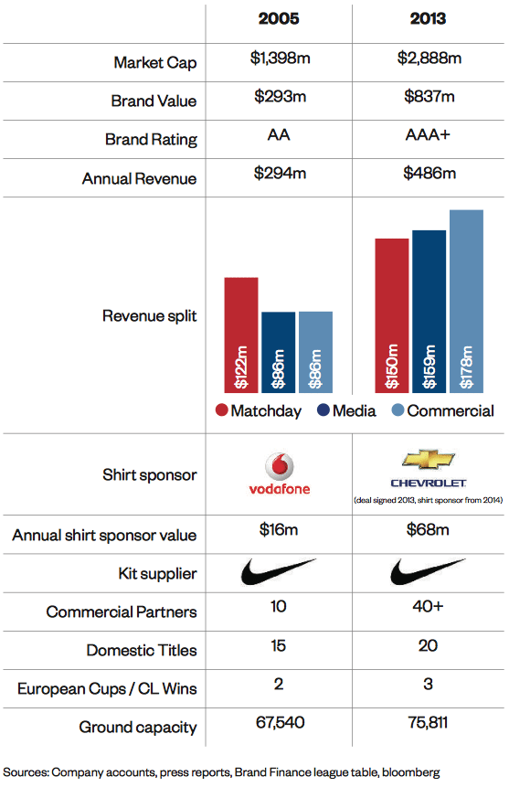 Stijgers en dalers waarde voetbalclubs 2006 – 2013